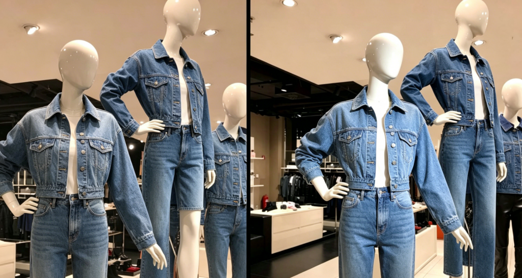 BBL position is not the only factor that determines how a garment looks. Philips demonstrated with equal clarity that two luminaires with the same beam angle can produce visibly different spot sizes, brightness perceptions, and contrast effects — purely because of how the beam is shaped.